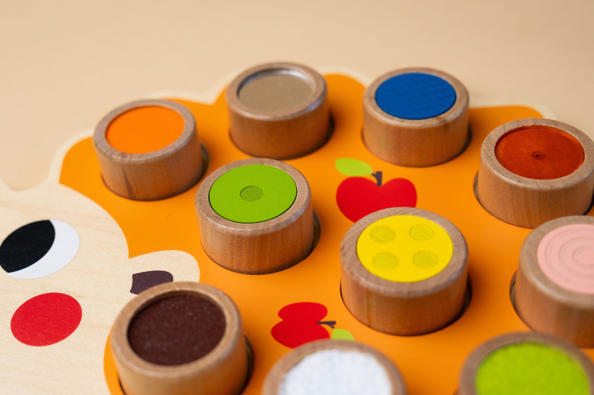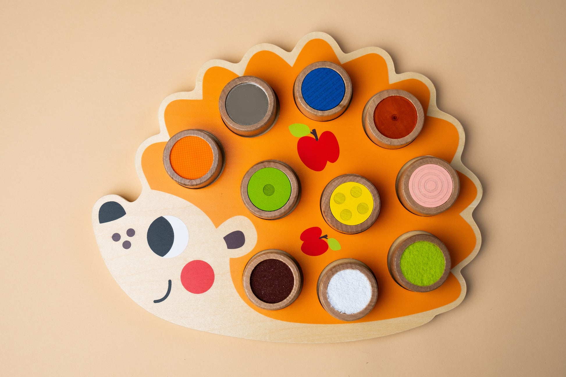 Jutiminis ežiukas yra interaktyvus žaislas, padedantis mažyliams pažinti skirtingas tekstūras ir spalvas. Medinės detalės su skirtingais paviršiais skatina smalsumą ir prisilietimo pojutį, lavina smulkiąją motoriką bei sensorinius įgūdžius.